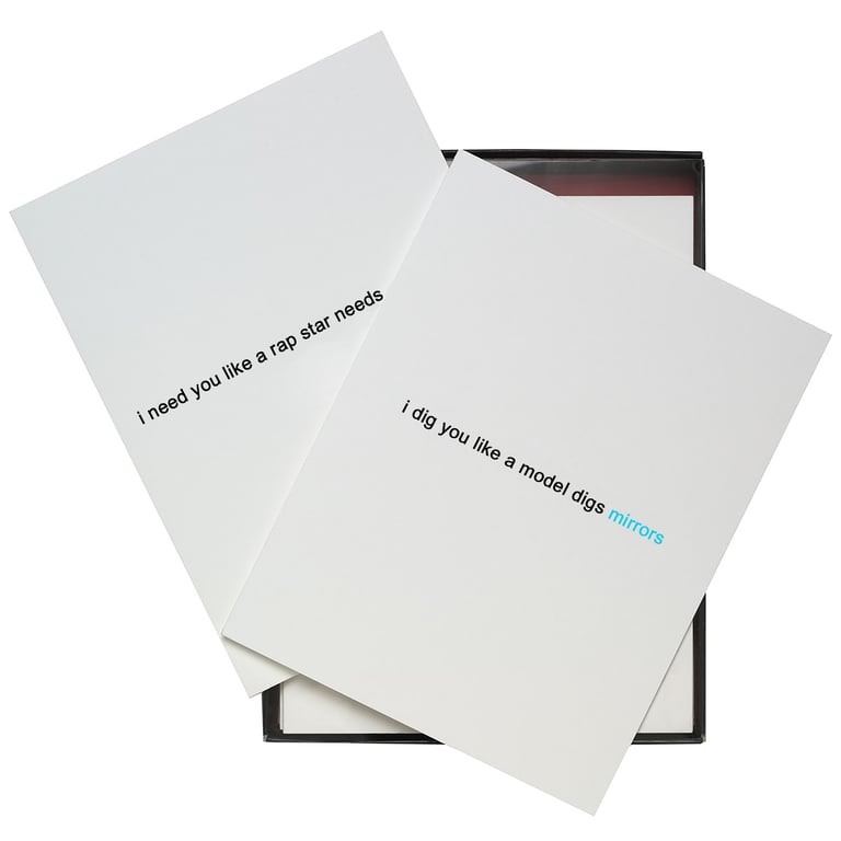 4.25 x 5.5 - heavy white stock - raised type - 8 signature red envelopes